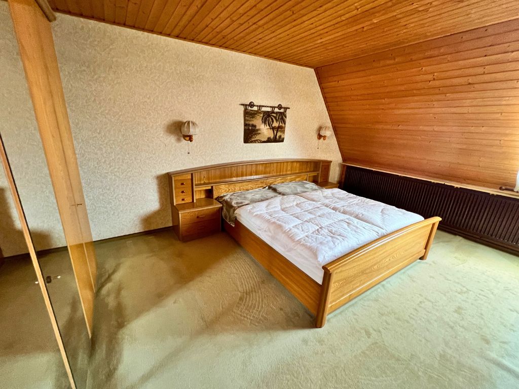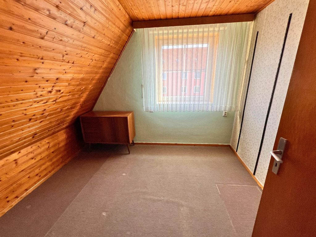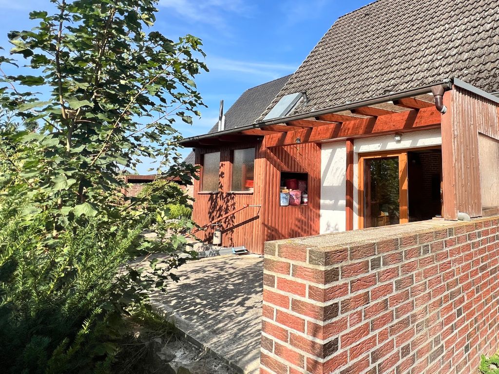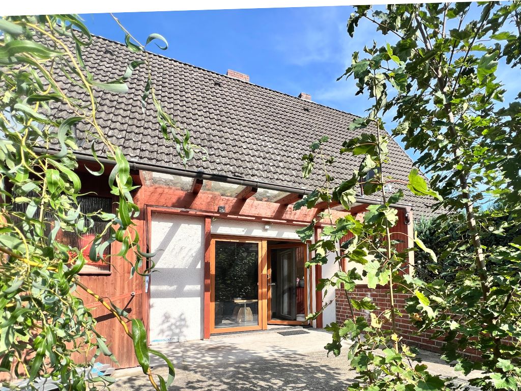 Dieses Einfamilienhaus wurde ursprünglich 1936 als freistehendes Siedlungshaus erbaut. Im Jahr 1999 wurde das Gebäude durch einen weiteren, eigenständigen Wohnhausanbau, erweitert. Zum Verkauf steht nunmehr die vordere Doppelhaushälfte, dessen Grundstück zentral gelegen, direkt an die Wrestedter Bahnhofstrasse grenzt. Mit einer Wohnfläche von rund 120 m², bietet das Haus auch Familien mit Kindern ausreichend Platz. Die fünf Zimmer des Hauses verteilen sich auf Erdgeschoss und das voll ausgebaute Dachgeschoss. Im Erdgeschoss stehen auch Küche und ein erst 1990 neu entstandenes Bad zur Verfügung. Bemerkenswert ist, das der Südgiebel des Gebäudes schon 2006 mit einem Wärmeverbundsystem nachgerüstet wurde. Die Dacheindeckung wurde 1989 vollständig erneuert und auch die Fenster wurden seither nach und nach ausgetauscht.